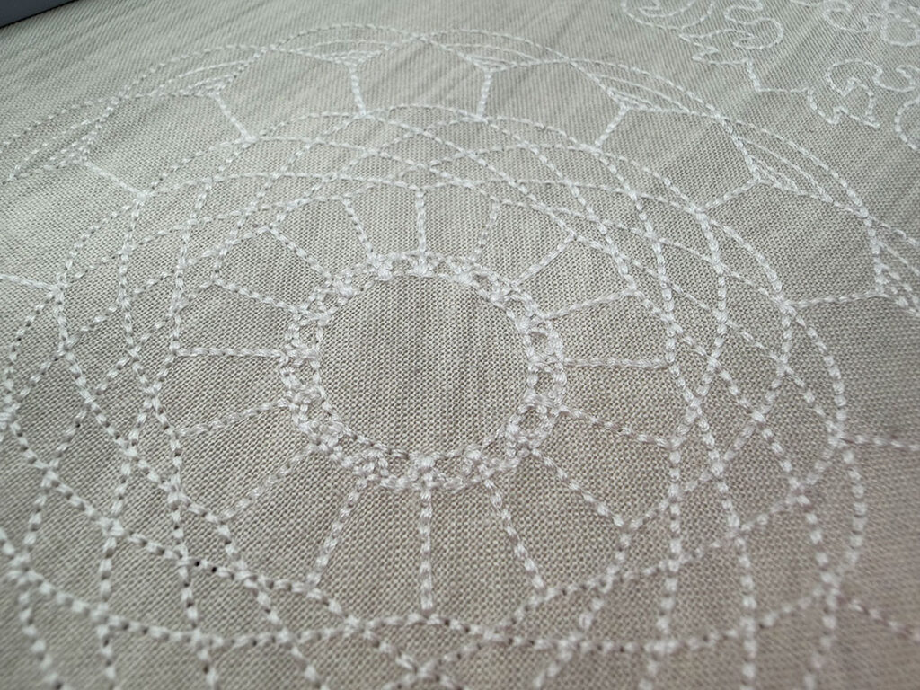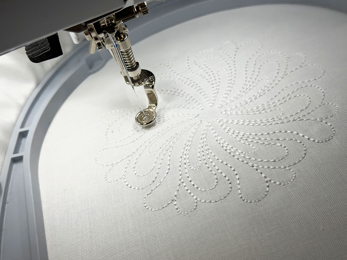 Modern quilting and machine embroidery may not immediately seem like a match, but for this design, I am embracing the textural elements machine embroidery can offer and incorporating single-color designs stitched on a similar color fabric to increase texture while providing subtle line work.