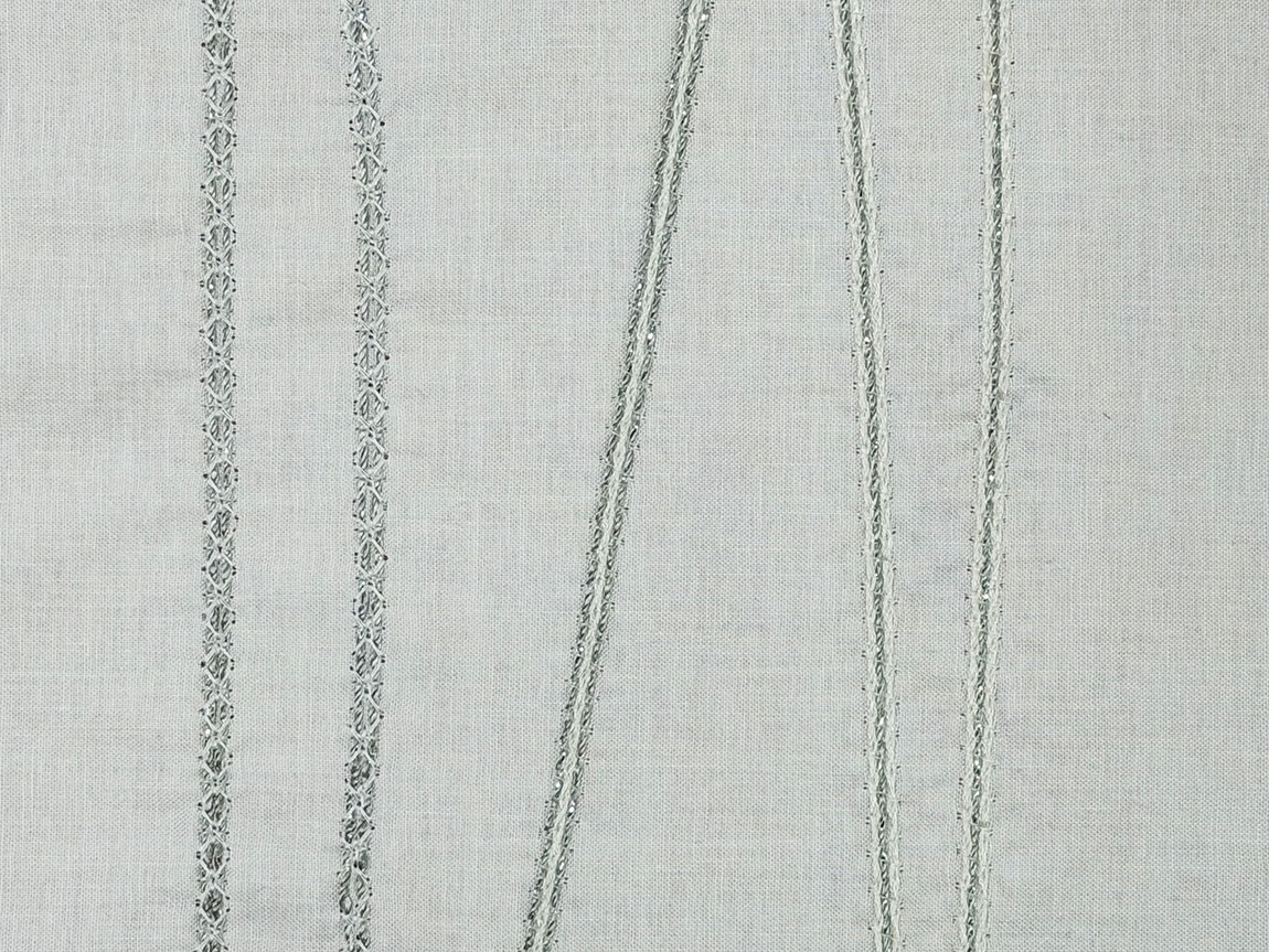 I used a heavier cord to couch this Christmas Stocking a few years ago, but for this project, I wanted to use a lower-profile material. Using a cording foot on my machine, I was able to couch three strands of heavy thread and embroidery floss into a single row at once.