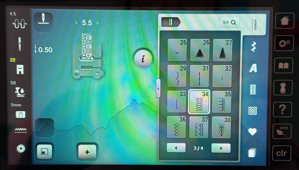 I experimented with a few types of stitches with this technique, and ended up liking the simplicity of a curved utility stitch.