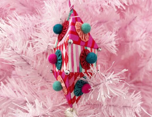 These ornaments use single sided fusible foam to create the structure. I am thrilled with how sturdy these ornaments turned out, and I have no worries about them getting crushed during storage.