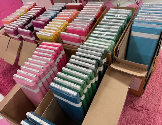 Greenery is the Pantone Color of the Year, and the pink accents include the Kona color of the year, Flamingo.  This combination was a recent challenge for the Central Ohio Modern Quilt Guild.