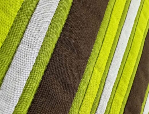 Binding for this project is scrappy, drawing on several fabrics included in the quilt top design.